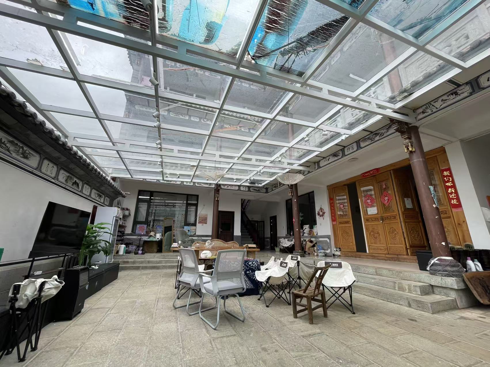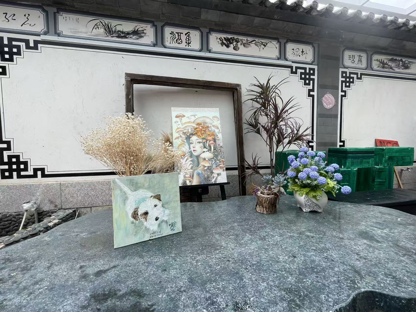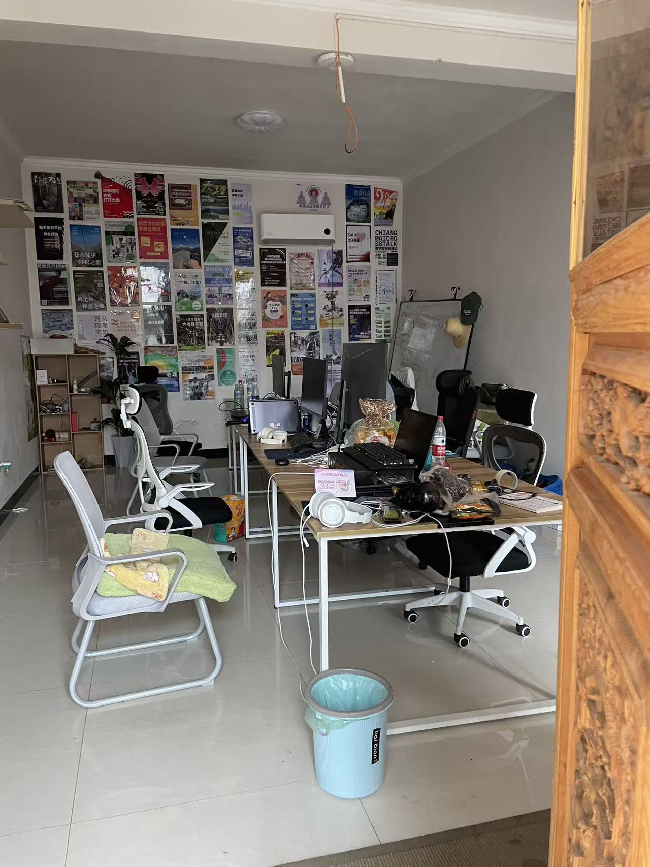 石碓(duì, duī)村上坡到顶,就是2023年我们第一次离职出行来住的客栈上方,有个跑马场,旁边小路进去,挺隐秘的院子。爬坡有点累,对宅男宅女有好处。 上午10点去了一次,只有个小伙子,下楼到会议室(工作室?)开电脑看片。我问了一下说其他人都没起床或者没出门。让我加了小程序,聊了一下。