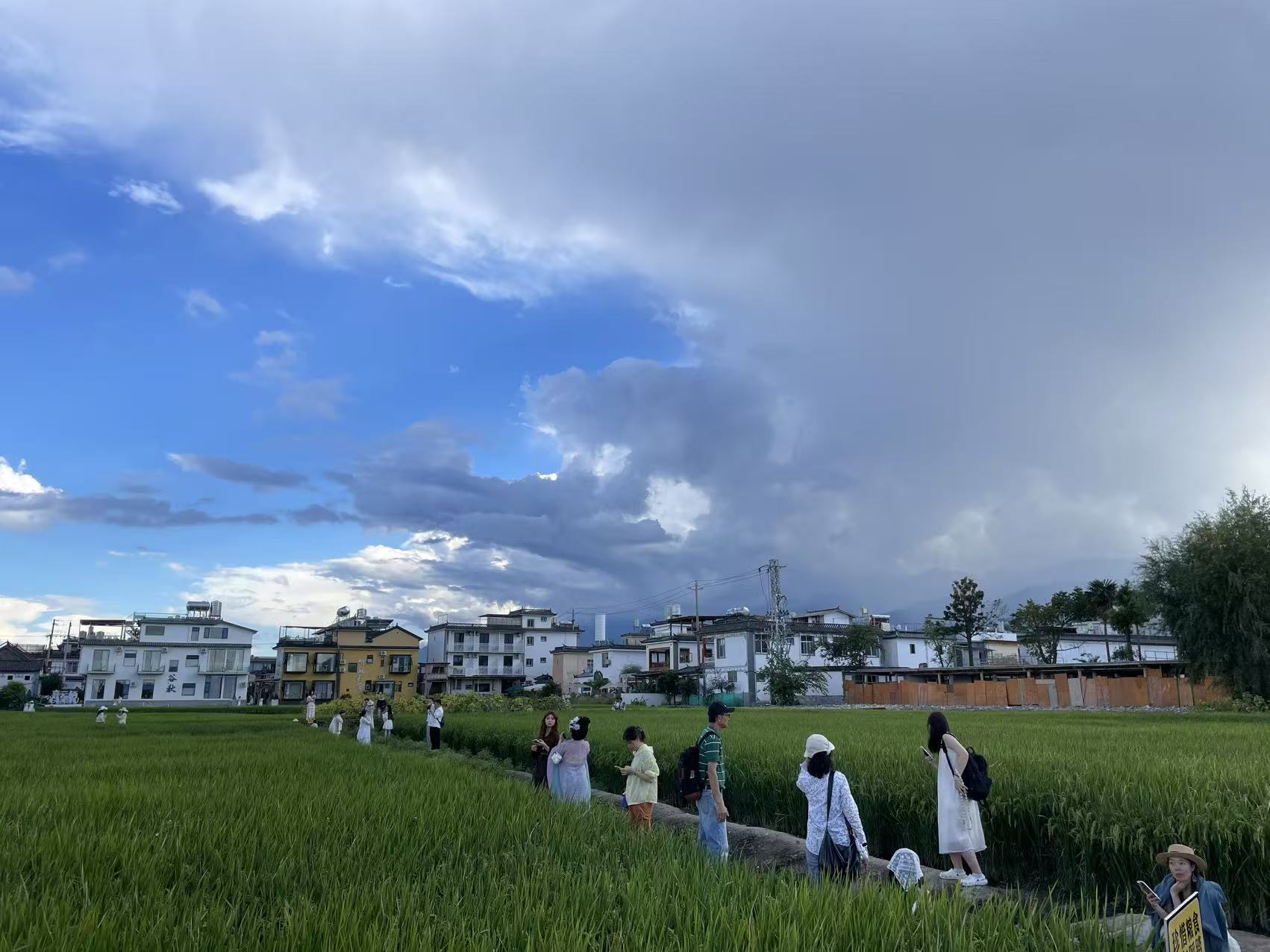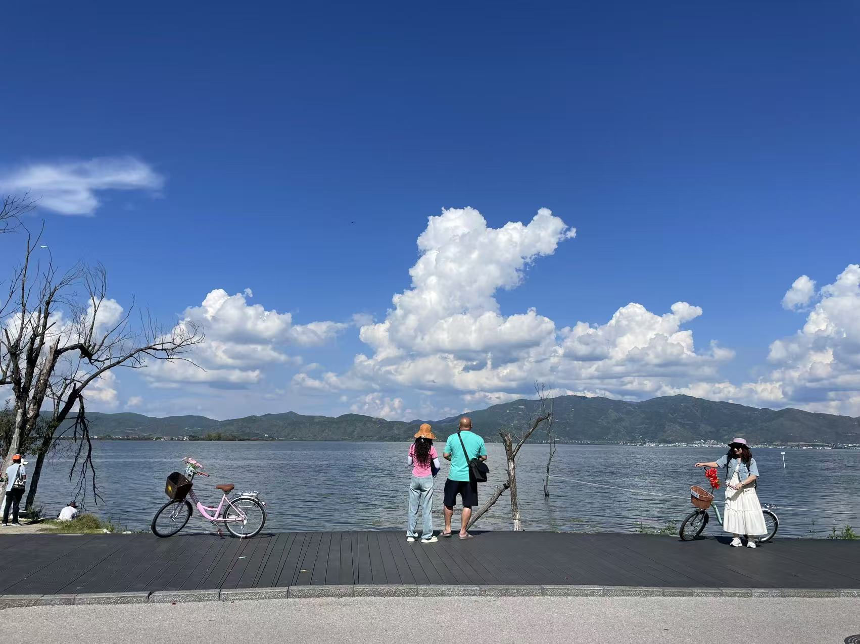 就算在整个云南,我也是第一次跟团,纯粹是闲的无聊又好奇,而且太便宜了。 古城拉团的是白族本地人,就聊起来,然后50块钱参加了个团(其他人至少80),导游是白族妹,颜值可以、热情大方,也不算太庸俗。出发时快4点,一圈回来9点过(我是回到下关)。 n个S湾之一骑单车,然后喜洲古镇看田、买冰箱贴、吃冰棒冰牛奶,这两个环节体验还行,后面的双廊、看孔雀等等,都挺无聊,到海东那些什么圣托里尼都完全黑了,大家急着回去,于是也没安排了。